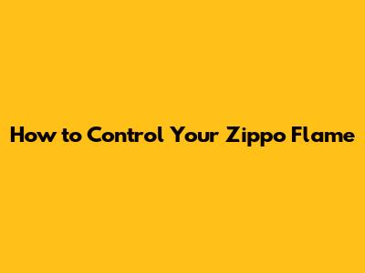 How To Control Your Zippo Flame