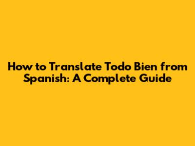 How To Translate Todo Bien From Spanish: A Complete Guide
