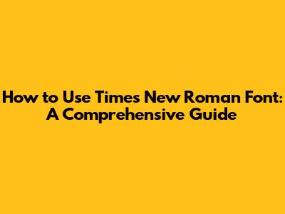 How To Use Times New Roman Font: A Comprehensive Guide
