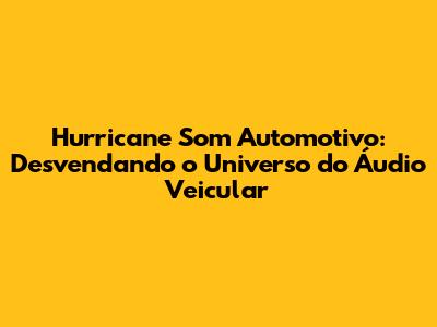 Hurricane Som Automotivo: Guia Completo Para Um Sistema Impecável