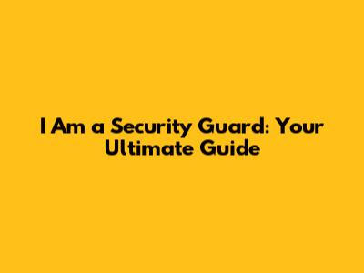 I Am A Security Guard: Your Ultimate Guide