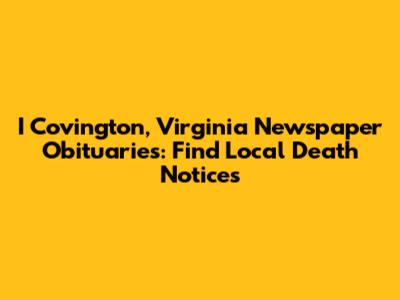 I Covington VA Newspaper Obituaries: Find Local Death Notices