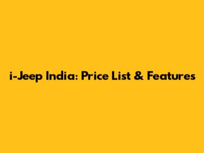 I-Jeep India: Price List & Features