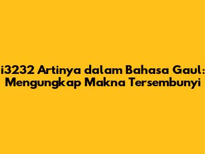 I3232 Artinya: Panduan Lengkap Bahasa Gaul Kekinian