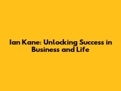 Ian Kane: Unlocking Success In Business And Life