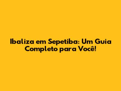 Ibaliza em Sepetiba: Um Guia Completo para Você!