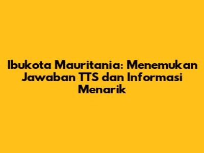Ibukota Mauritania TTS - Pernahkah Anda kesulitan memecahkan teka-teki silang (TTS) yang menantang? Salah satu pertanyaan yang sering muncul adalah mengenai ibukota Mauritania. Bagi sebagian orang, ini bisa menjadi teka-teki yang sulit dipecahkan. Mari kita selami lebih dalam tentang ibukota Mauritania, mengungkap jawabannya untuk TTS Anda, serta menyajikan beberapa fakta menarik seputar negara ini. Dengan begitu, Anda tidak hanya mendapatkan jawaban TTS, tetapi juga memperkaya pengetahuan Anda tentang Mauritania. Mari kita mulai petualangan seru ini!
