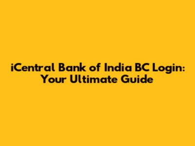 ICentral Bank Of India BC Login: Your Ultimate Guide