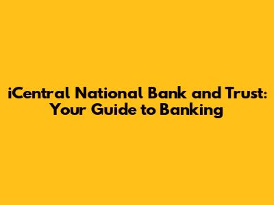 Hey everyone! Today, we're diving deep into iCentral National Bank and Trust. We'll cover everything from their services to their online banking features, plus a peek at their history and what makes them tick. Whether you're a seasoned banking pro or just starting out, this guide is for you. So, grab a coffee (or your favorite beverage), and let's get started!