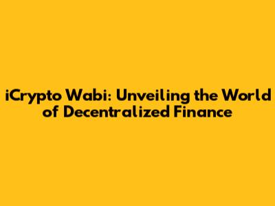Hey crypto enthusiasts, ever heard of iCrypto Wabi? If you're knee-deep in the world of decentralized finance (DeFi), or just getting your feet wet, this name might have popped up on your radar. So, what's the deal with iCrypto Wabi? Let's dive in and break down everything you need to know about this intriguing player in the crypto game. This article will be your ultimate guide to understanding iCrypto Wabi, its core functions, the benefits it offers, and its potential impact on the evolving landscape of DeFi. Ready to explore? Let's get started!
