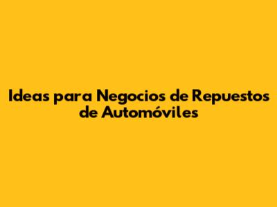 Ideas Para Negocios De Repuestos De Automóviles