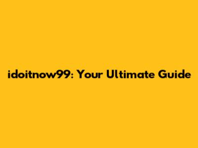 Idoitnow99: Your Ultimate Guide