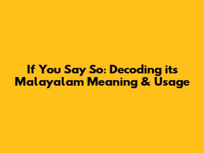 If You Say So: Decoding Its Malayalam Meaning & Usage