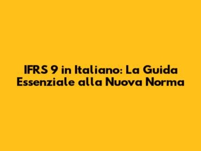 IFRS 9 In Italiano: La Guida Essenziale Alla Nuova Norma