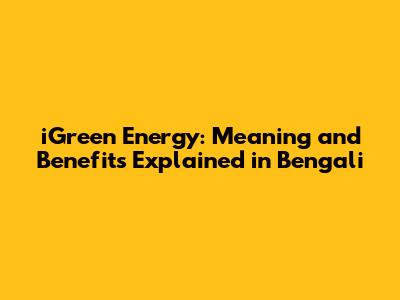 IGreen Energy: Meaning And Benefits Explained In Bengali