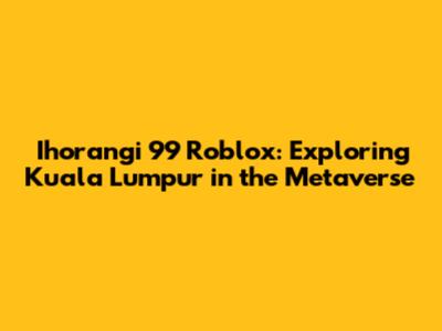 Hey guys! Ever thought about exploring Kuala Lumpur without actually hopping on a plane? Well, with Ihorangi 99 Roblox, you kinda can! This unique experience brings the vibrant streets and iconic landmarks of Kuala Lumpur right into the Roblox metaverse. Let's dive into what makes this virtual adventure so cool and why you should totally check it out.