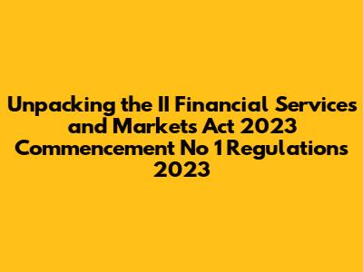 Hey guys! Let's dive into something super important if you're involved in the financial world: the II Financial Services and Markets Act 2023 Commencement No 1 Regulations 2023. This might sound like a mouthful, but trust me, understanding these commencement regulations is crucial for navigating the evolving financial landscape. We're going to break down what this Act is all about, why it's being rolled out, and what these specific regulations mean for you. Think of this as your go-to guide to staying ahead of the curve and making sure you're compliant and savvy in the financial markets.