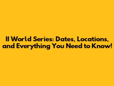 II World Series: Dates, Locations, And Everything You Need To Know!
