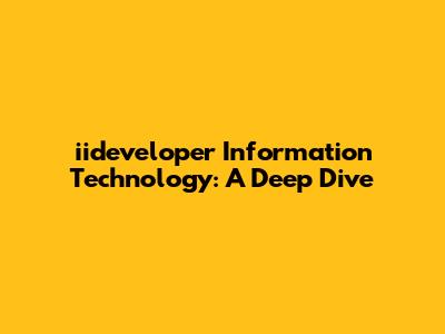 Iideveloper Information Technology: A Deep Dive