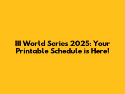 III World Series 2025: Your Printable Schedule Is Here!