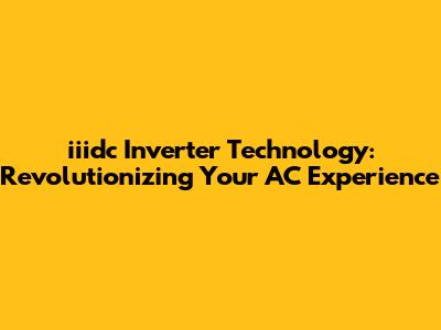 Iiidc Inverter Technology: Revolutionizing Your AC Experience