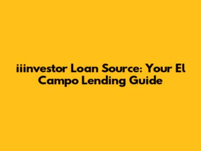 Iiinvestor Loan Source: Your El Campo Lending Guide