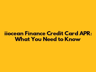 Iiocean Finance Credit Card APR: What You Need To Know