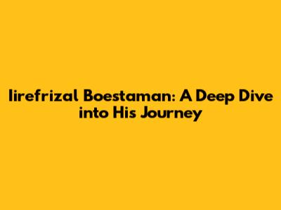 Hey everyone! Today, we're going to chat about a guy who's been making some serious waves: Iirefrizal Boestaman. You might have heard his name buzzing around, and for good reason. He's been involved in some really interesting projects and has a story that's definitely worth exploring. Whether you're a long-time follower or just curious about who he is, stick around because we're going to unpack his journey, his contributions, and what makes him tick. We'll be looking at his background, his key achievements, and maybe even get a glimpse into his future endeavors. So, grab your favorite drink, get comfy, and let's dive into the world of Iirefrizal Boestaman!