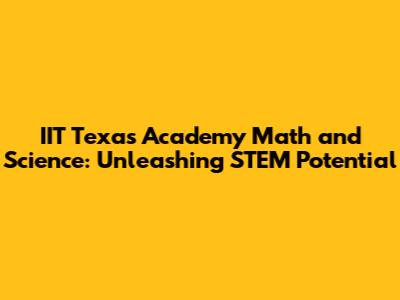 IIT Texas Academy: Your Gateway To STEM Excellence
