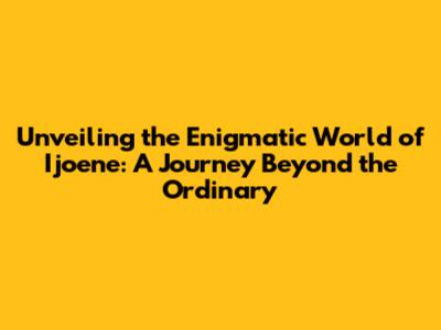 Unveiling the Enigmatic World of Ijoene: A Journey Beyond the Ordinary
