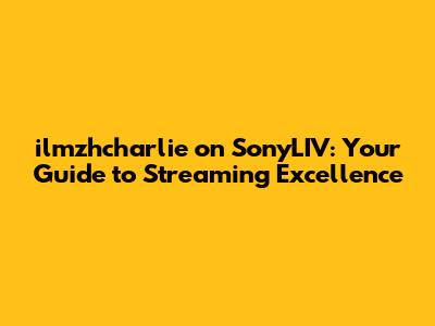 Ilmzhcharlie On SonyLIV: Your Guide To Streaming Excellence