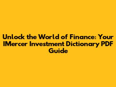 Hey guys! Ever felt a bit lost in the sea of financial jargon? You know, those terms like "asset allocation," "diversification," or "bull market" that sound super important but might leave you scratching your head? Well, you're not alone! Finance can be a tricky beast, and understanding it is the first step to making smarter investment decisions. That's where a good investment dictionary comes in, and today, we're diving deep into the IMercer Investment Dictionary PDF. This isn't just any old glossary; it's your secret weapon to demystifying the complex world of investing, all available in a handy PDF format. We'll explore why having such a resource is crucial, what you can expect to find inside, and how it can truly empower you to take control of your financial future. So, grab a coffee, get comfy, and let's break down why this dictionary is a game-changer for anyone looking to level up their financial literacy.