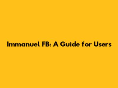 Immanuel FB: A Guide For Users