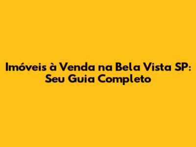 Imóveis À Venda Na Bela Vista SP: Seu Guia Completo