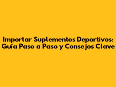 Importar suplementos deportivos puede ser una excelente manera de acceder a una amplia variedad de productos, ahorrar dinero y optimizar tu régimen de suplementación. Siguiendo los pasos y consejos descritos en esta guía, podrás realizar tus importaciones de manera segura, legal y eficiente. Recuerda investigar a fondo, cumplir con las regulaciones y tomar las precauciones necesarias para garantizar la calidad y la autenticidad de los productos que importas. ¡Prepárate para llevar tu rendimiento al siguiente nivel con los suplementos deportivos adecuados! ¡Mucho éxito en tus importaciones!