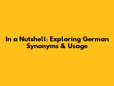 Hey guys! Ever found yourself scratching your head, trying to find the perfect German word to express yourself? Well, you're not alone! It's super common, especially when you're aiming for that specific nuance or trying to sound, you know, like a native. Today, we're diving deep into the world of German synonyms for "in a nutshell" – or, as the Germans would say, "in a nutshell synonym deutsch". We'll explore various ways to translate this common English phrase, looking at different levels of formality, context, and the subtle shades of meaning each German equivalent carries. Buckle up, because we're about to make your German vocabulary a whole lot more interesting and versatile. This exploration is going to be helpful whether you are a beginner or a seasoned German speaker, as you will learn different ways of saying the same thing, which can add depth to your language skills.