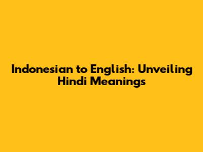 Indonesian To English: Unveiling Hindi Meanings