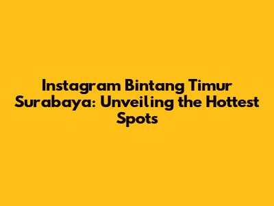 Instagram Bintang Timur Surabaya: Your Ultimate Guide