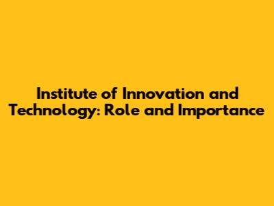 Institute Of Innovation And Technology: Role & Importance