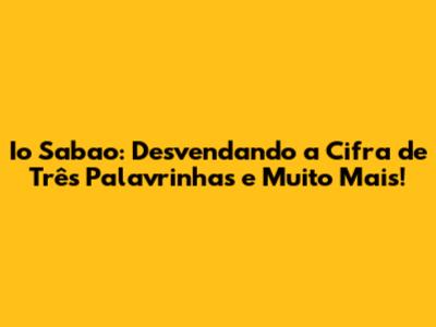Io Sabao: Aprenda A Cifra Da Música Em Detalhes!