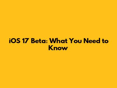 IOS 17 Beta: What You Need To Know