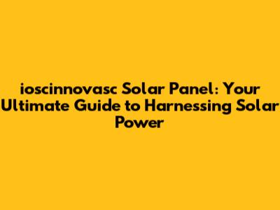 Ioscinnovasc Solar Panel: Complete Guide & Review