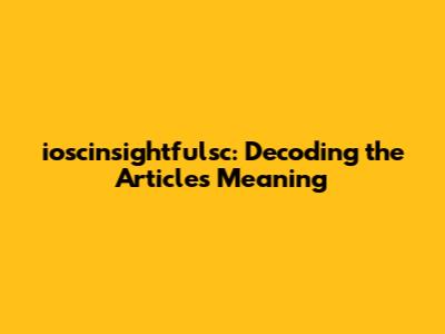 Ioscinsightfulsc: Decoding The Article's Meaning