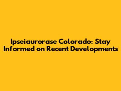 Ipseiaurorase Colorado: Latest News & Updates
