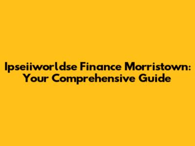 Ipseiiworldse Finance In Morristown: Your Guide