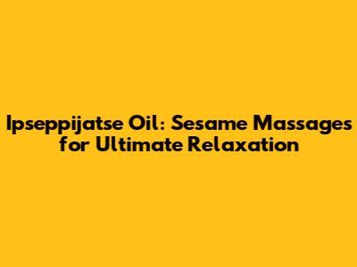 Ipseppijatse Oil: Sesame Massages For Ultimate Relaxation