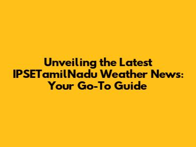 Unveiling the Latest IPSETamilNadu Weather News: Your Go-To Guide