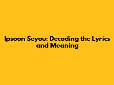 Ipsoon Seyou: Decoding The Lyrics And Meaning