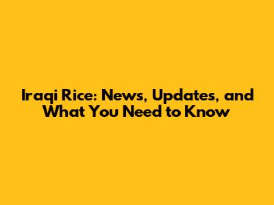 Iraqi Rice: News, Updates, And What You Need To Know