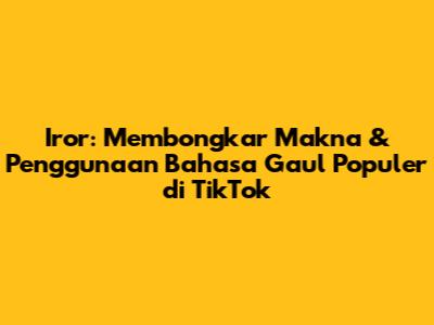 Iror artinya bahasa gaul TikTok yang lagi nge-hits, guys! Kalian pasti sering banget kan lihat atau dengar kata ini sliweran di FYP (For Your Page) TikTok? Nah, buat kalian yang masih bingung, jangan khawatir! Artikel ini bakal ngebongkar habis makna iror, asal usulnya, gimana cara pakainya, dan kenapa kata ini bisa se-booming itu di kalangan anak muda, khususnya pengguna TikTok. Yuk, simak penjelasan lengkapnya biar kalian makin update soal bahasa gaul kekinian!